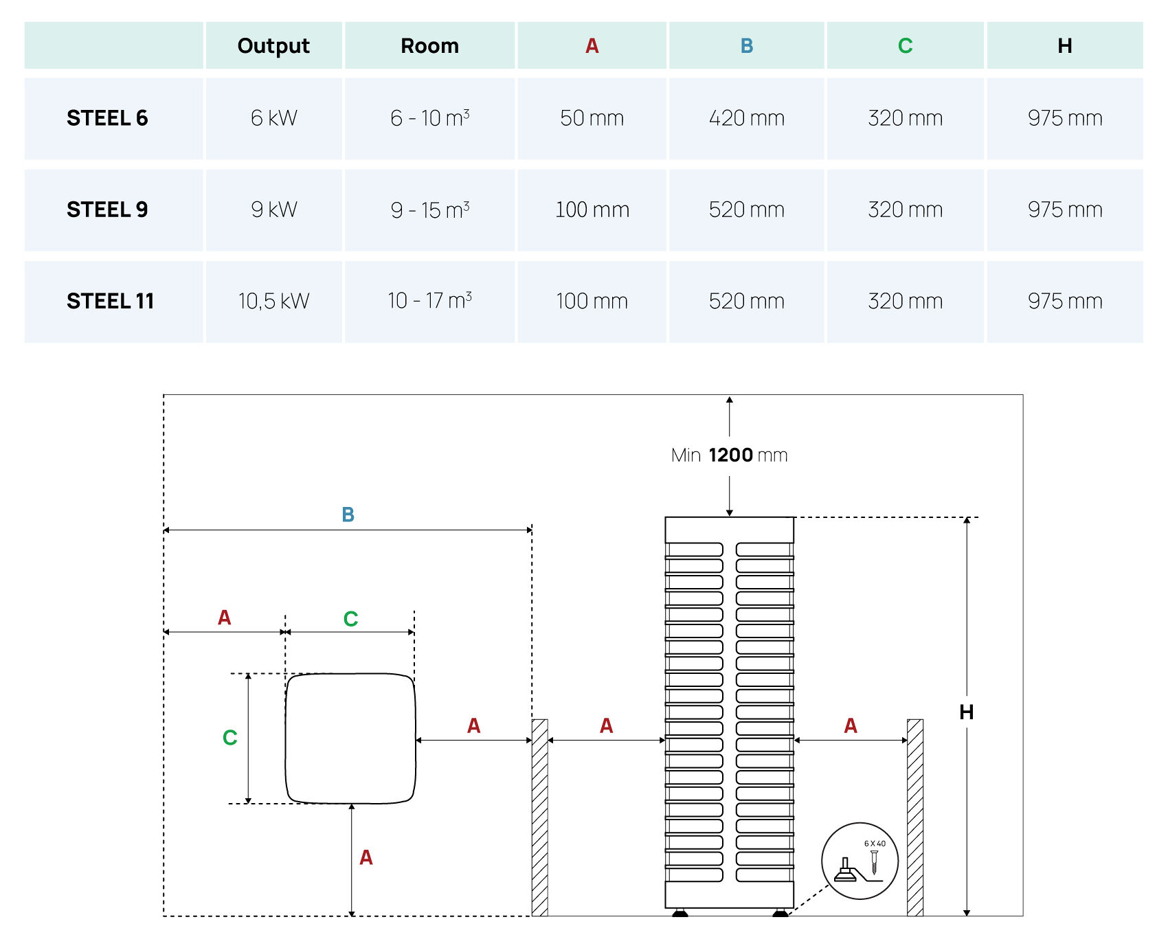 - Kas STEEL elektrikerise võimsus (kW) on vastavuses leiliruumi ruumalaga (m3)? Kui leiliruumis on isoleerimata tellistest, plaatidest, klaasist või palkidest seinu, tuleks leiliruumi ruumalale liita 1,5 m3 iga sellise seina ruutmeetri kohta.