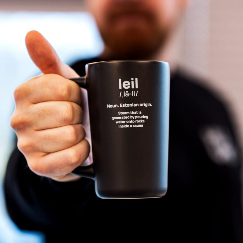 HUUMi kruus “Leil” on asendamatu saunasõpradele. Kruusi julge disain on inspireeritud Eesti saunakultuurist ning on ideaalne sinu soojale lemmikjoogile. Siiditrükis HUUMi logo lisab kruusile elegantse viimistluse.