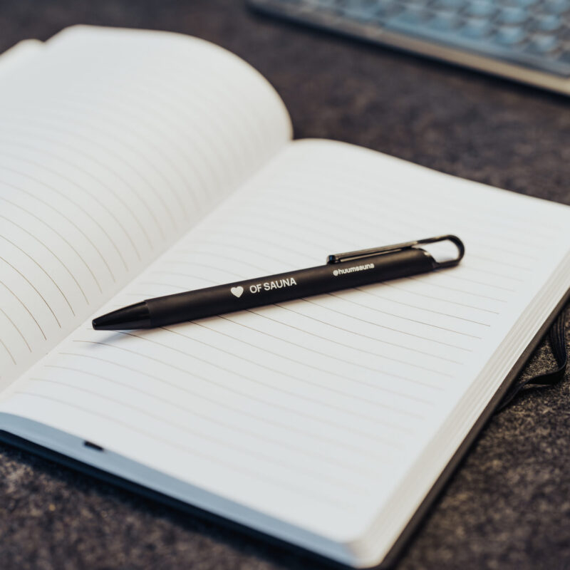 Kirjuta stiilselt elegantse ja mugava HUUM pastakaga. Kvaliteetse geel-tindi ja ergonoomilise kummikatte käepidemega valmistatud pastakale on graveeritud HUUMi logo.